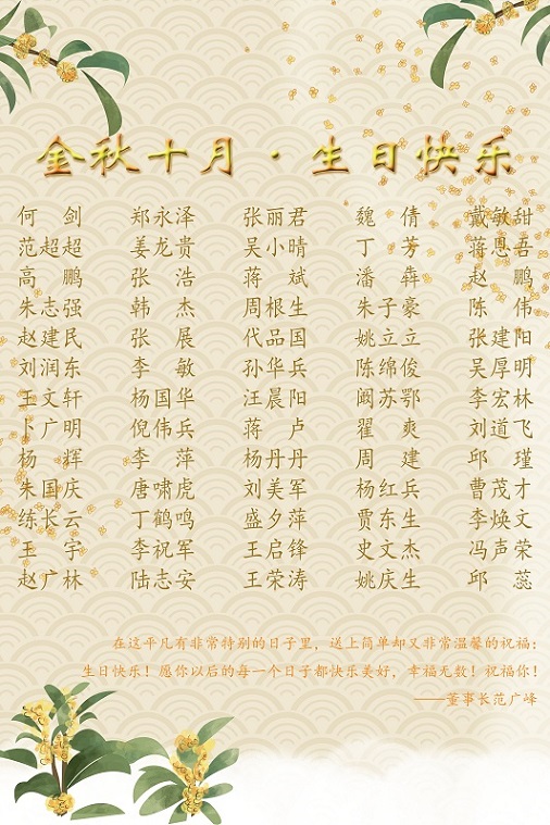 【生日祝?!抗ё?0月生日的員工生日快樂!