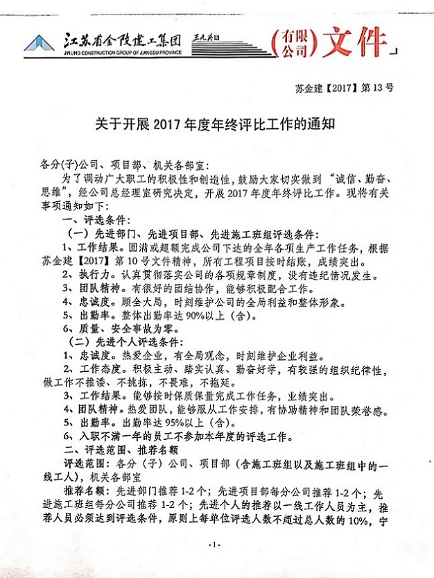 關(guān)于開(kāi)展2017年度年終評(píng)比工作的通知