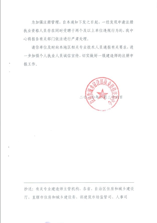 關(guān)于規(guī)范一級(jí)建造師注冊(cè)申報(bào)工作有關(guān)問(wèn)題的函